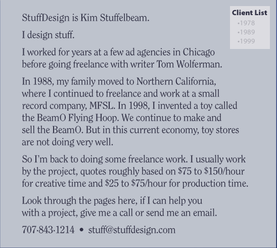 stuff@stuffdesign.com Tom Wolferman Client List